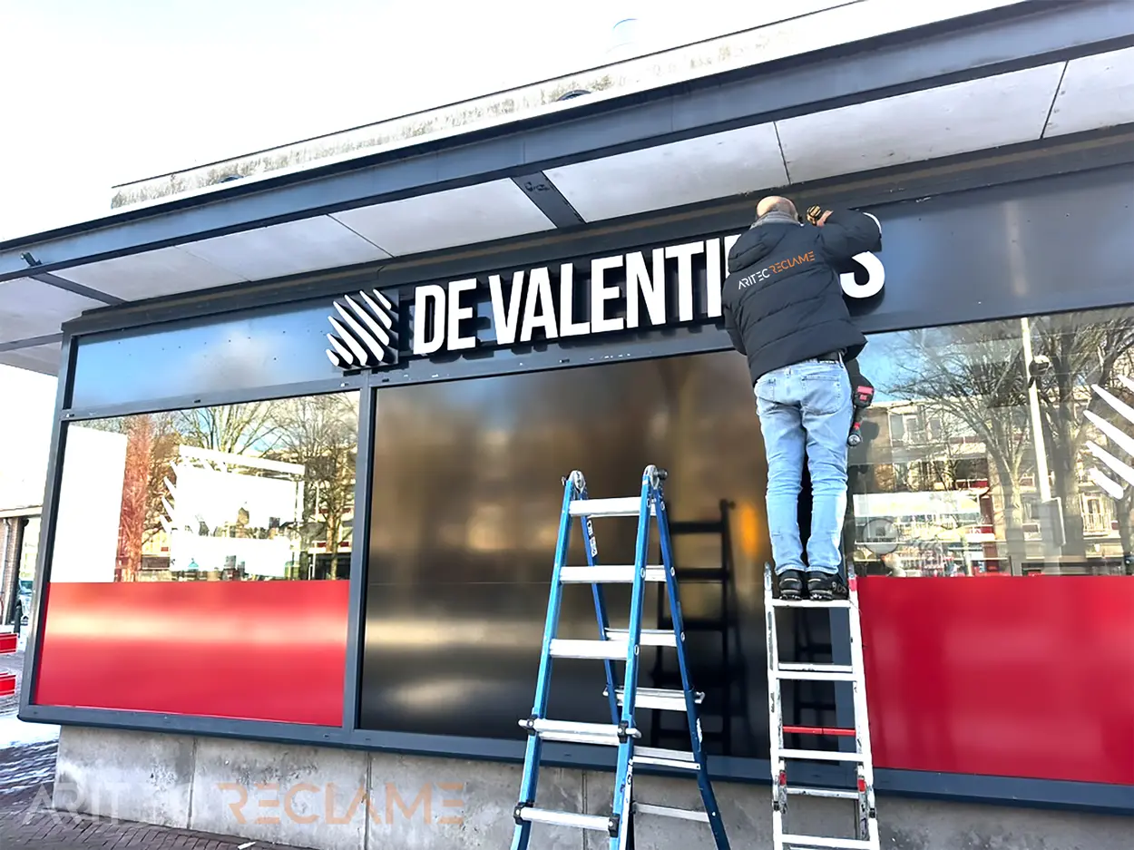Voor een subtiele maar krachtige uitstraling kiest u voor freesletters (bijv. Acrylaat of RVS) of robuuste gevelborden van Dibond. Perfect voor een professionele entree zonder dat er stroomvoorziening nodig is.